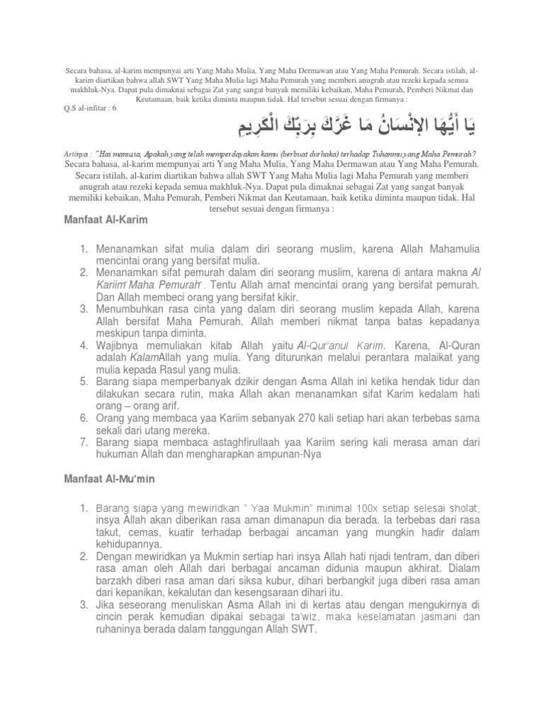 Manfaat Al Karim Al Kariim Maha Pemurah Pdf